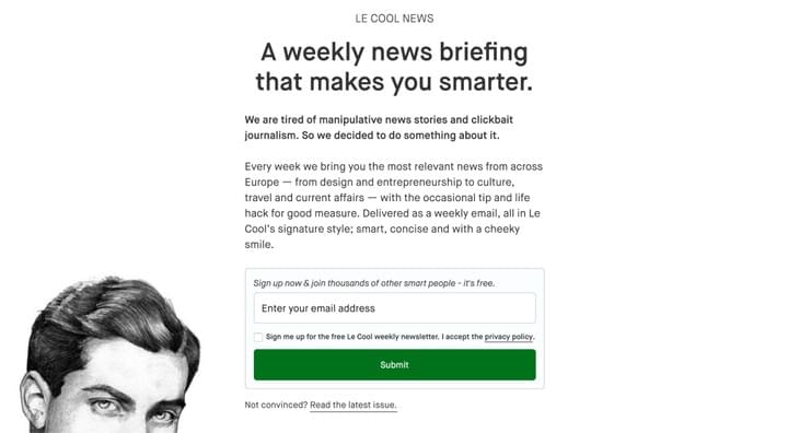 Launched in September 2018, Le Cool News is a weekly email newsletter created for Barcelona-based media and travel company Le Cool. Tired of manipulative news stories and clickbait journalism LCN brings readers the most relevant, forward-looking and future-positive news from across Europe across the realms of design, culture, travel, entrepreneurship, current affairs, climate, urban innovation and more, along with the occasional life hack for good measure. And it's all delivered in Le Cool's signature style: smart, concise and with a cheeky smile. As co-editor and one of the writers, we've taken Le Cool News from zero to over 15,000 unique subscribers in the first four months and rising purely through word of mouth and reader referrals without any social media promotion or marketing. Watch this space and sign up here.