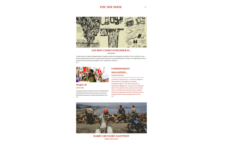 In early 2017 the owner of independent Beirut bookstore Papercup commissioned me to create, develop, edit and write their new online journal and newsletter sent out monthly to over 2,000 international subscribers in the creative, print and book publishing industry. The Sounder launched in July to popular acclaim and we are currently developing a print option the aim of which is to become the leading cultural magazine in Beirut.